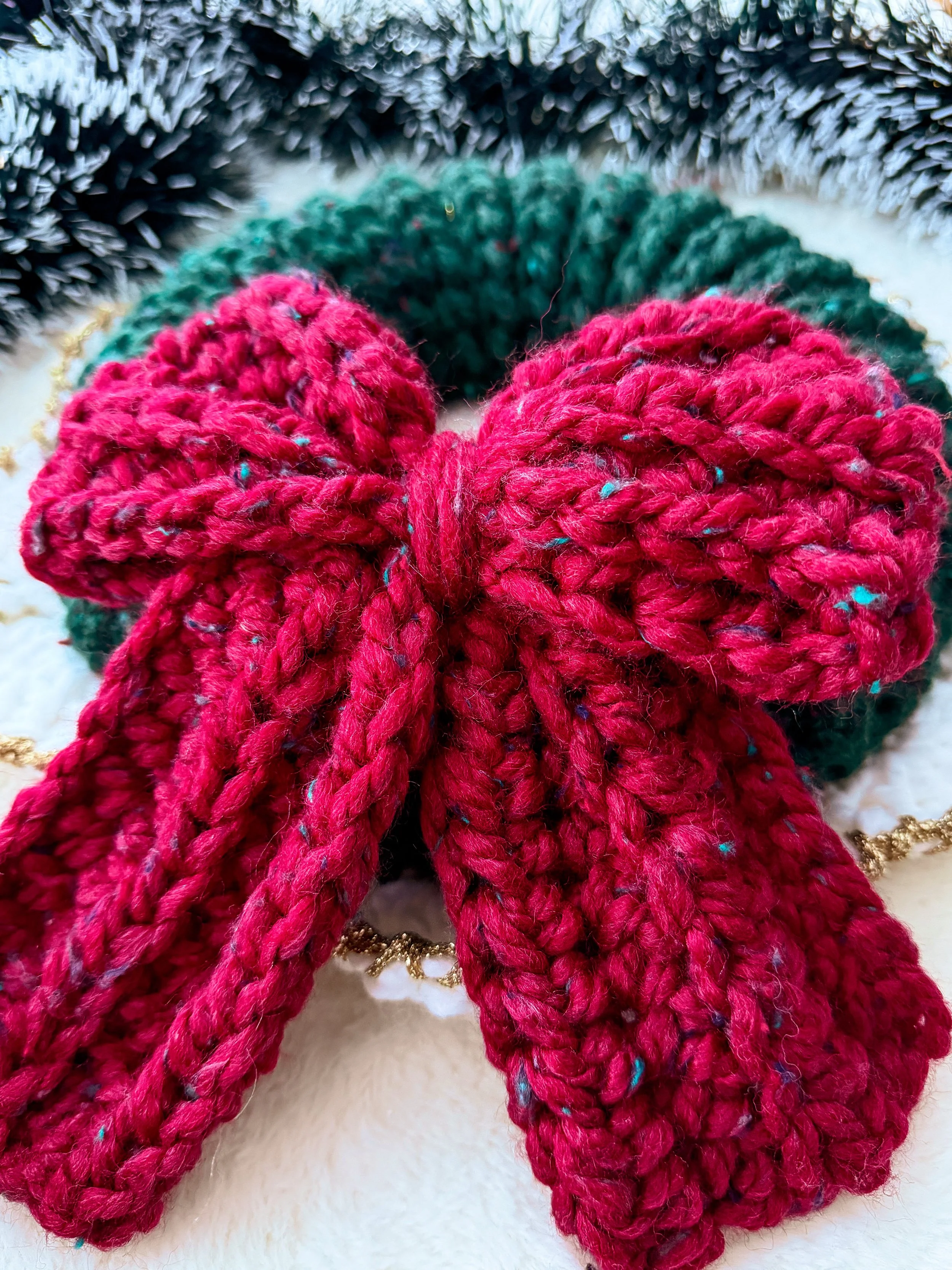 Use the remaining yarn to wrap tightly around the middle of the bow to finish it off.