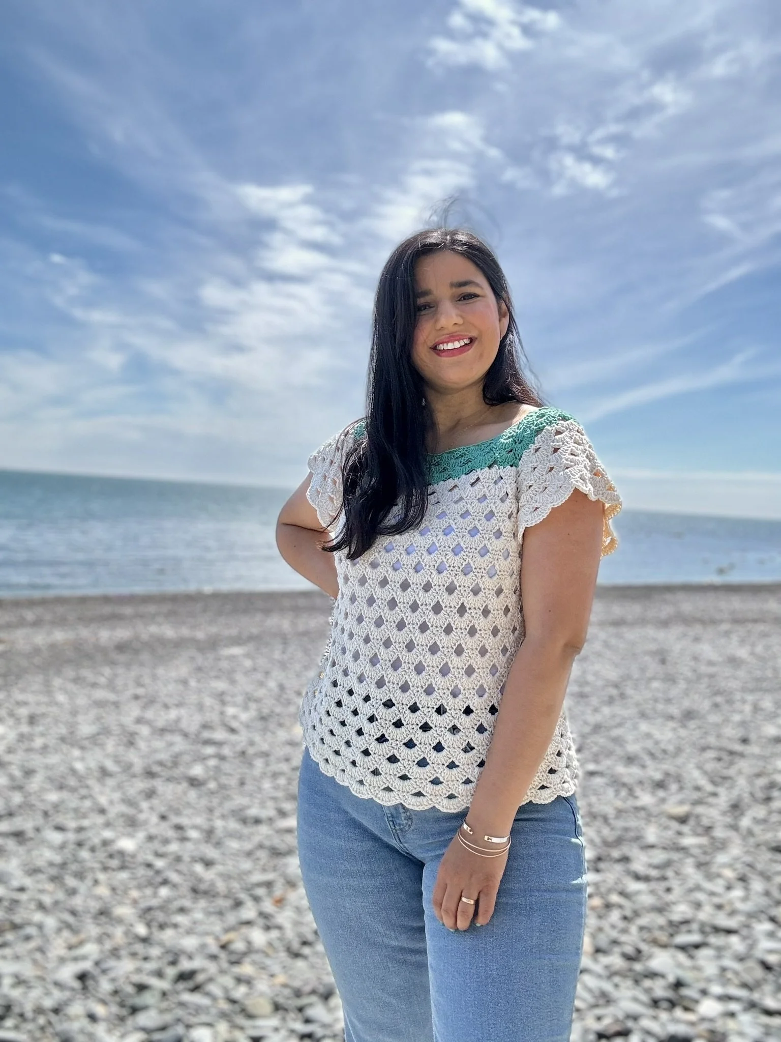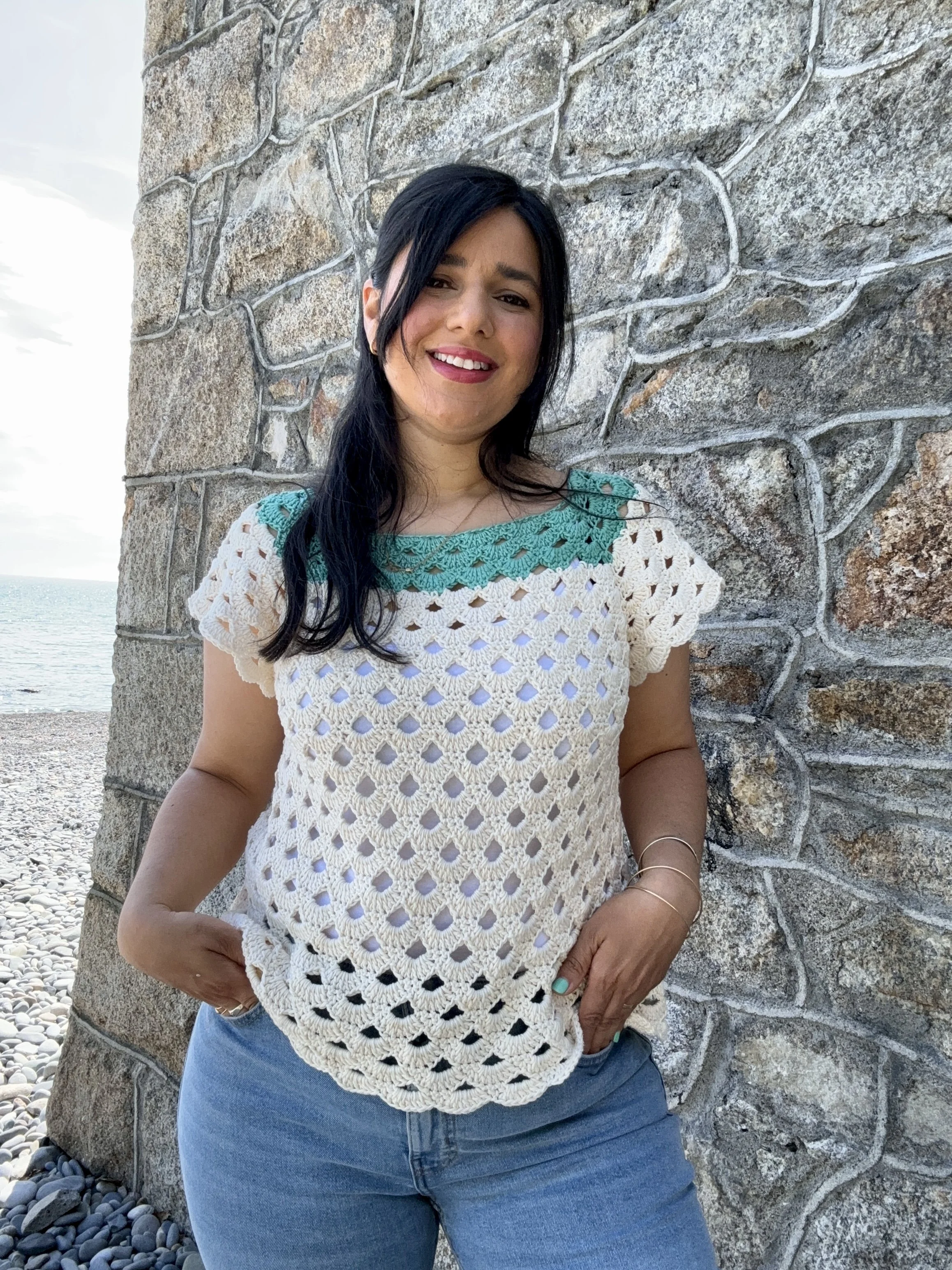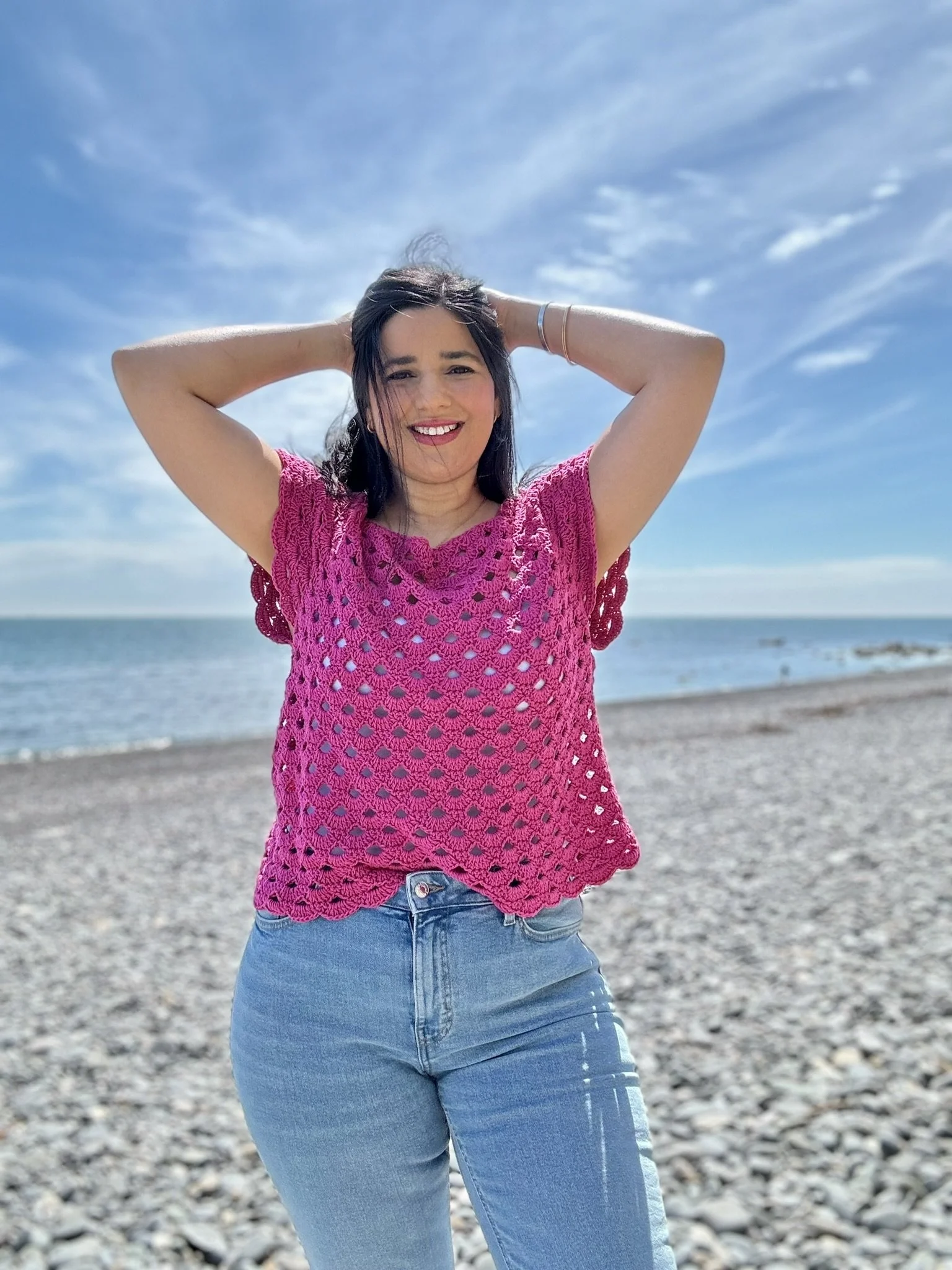 This top is crocheted seamlessly from the top down, which means you can try it on as you go and adjust the length to suit your style. Want it cropped? No problem. Prefer a longer, flowy fit? You can easily add a few extra rounds. With minimal sewing and only basic stitches—just single crochet and double crochet—this pattern keeps things simple while still delivering a polished, put-together look.