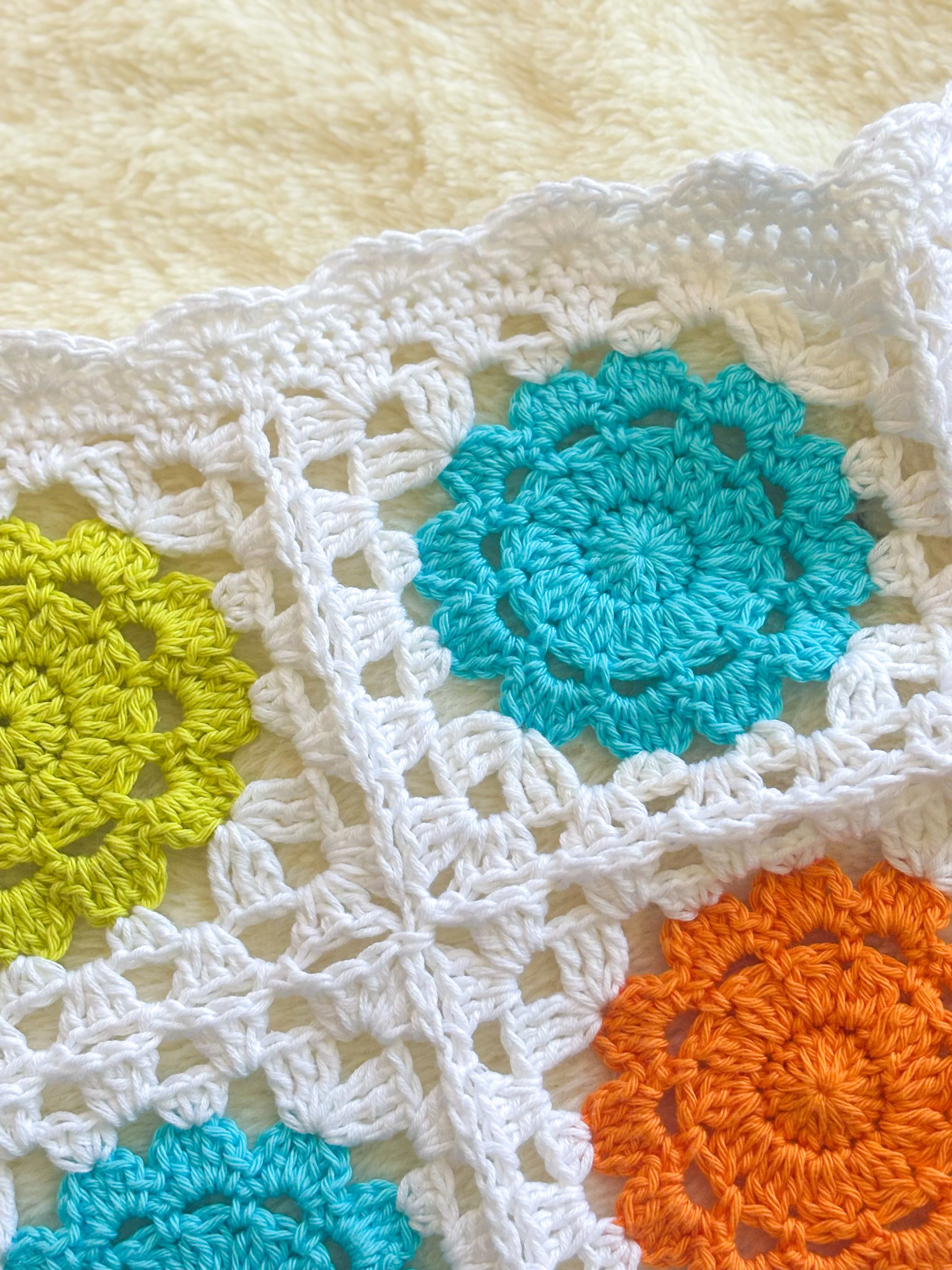 After making the squares, you will join them together and will work three rounds to make the border. The last round will create a delicate shell stitch border that adds the perfect touch of elegance and whimsy.